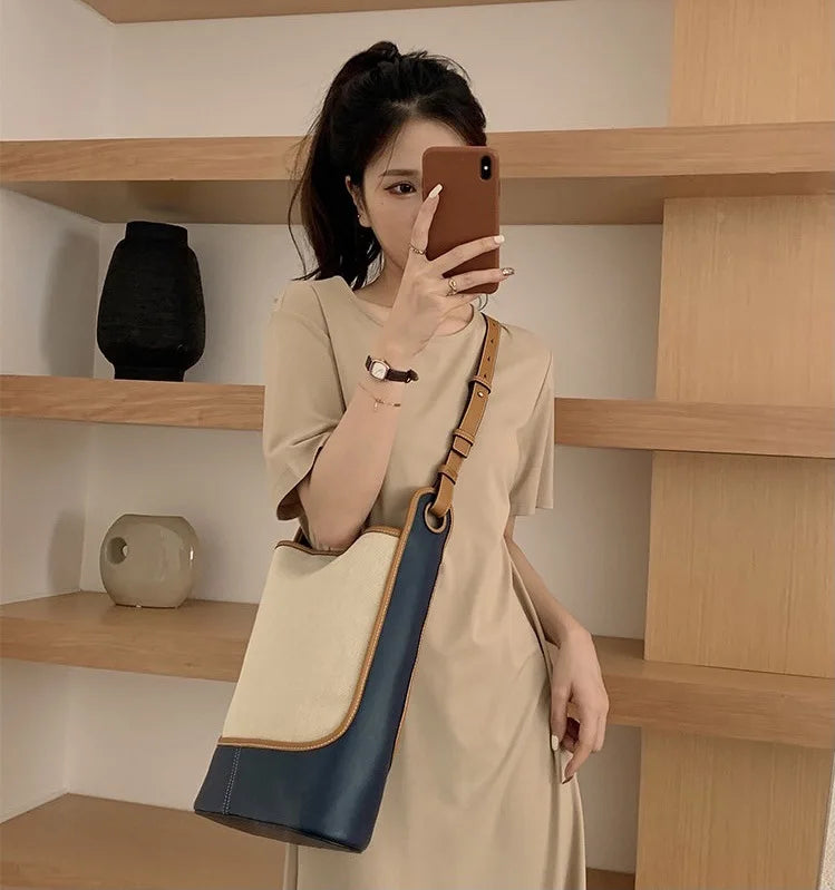 Canvas Bucket Bag Crossbody - Large Capacity Tote Purse