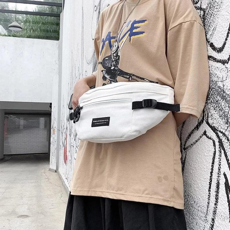 This casual canvas waist bag is perfect for outdoor sports. Features a single shoulder strap for convenient use.