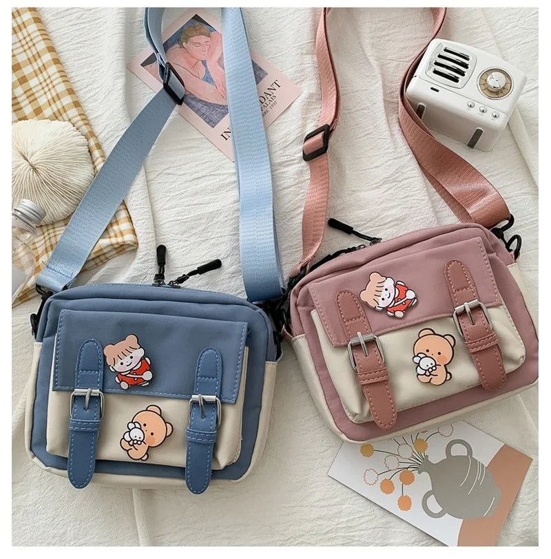 This stylish canvas crossbody bag is perfect for female students. It can be worn as a one-shoulder or crossbody bag, making it versatile and convenient for everyday use.