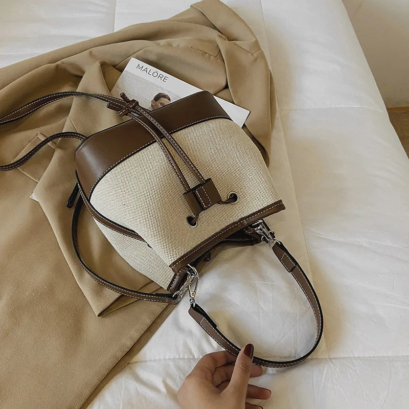 Canvas Drawstring Diagonal Bag Portable Bucket Bag