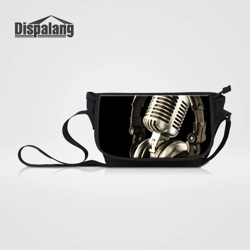 Stylish and durable canvas messenger bag featuring music note print, perfect for work, travel, outings. Fits iPad and offers large storage capacity.