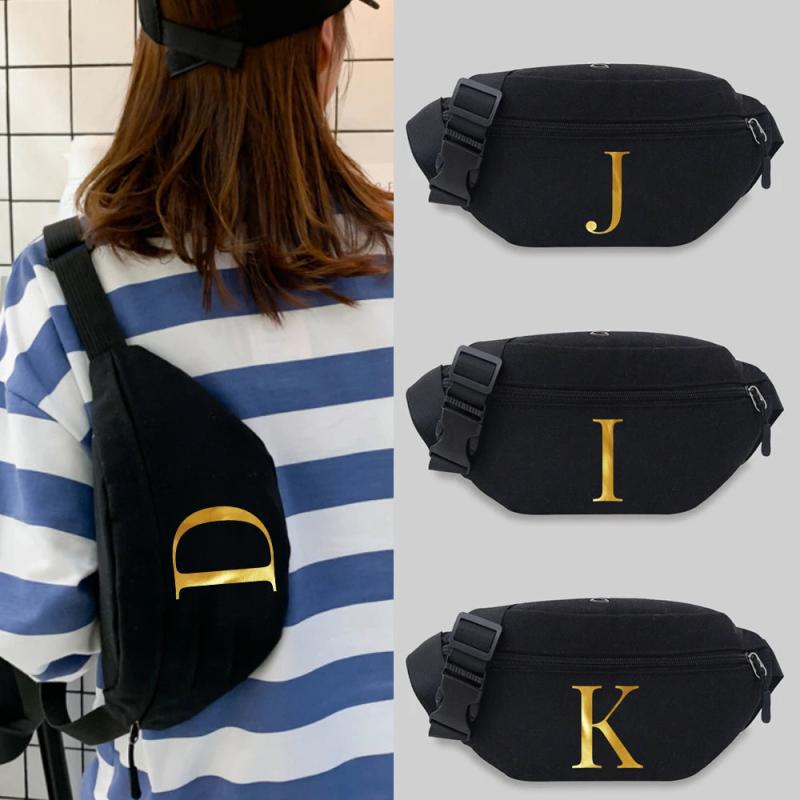 Canvas Messenger Waist Bag 26 Letter Name Pattern Fanny Pack