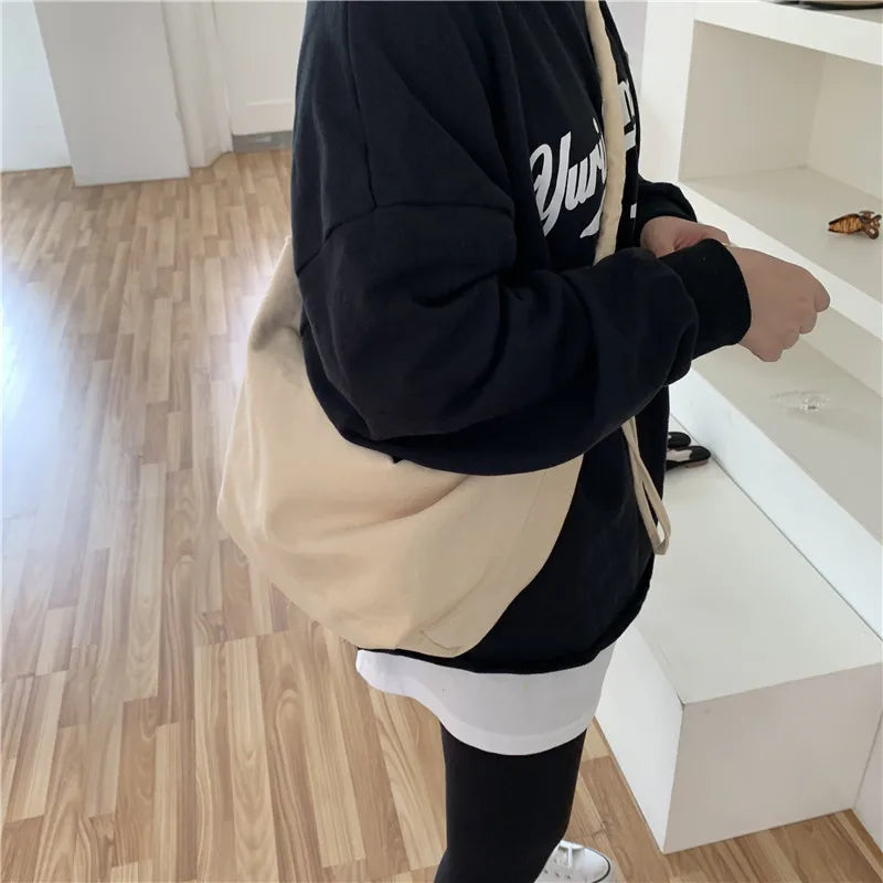 Canvas Pleated Drawstring Shoulder Bag Large Capacity Tote Bag