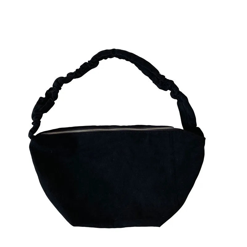 This stylish canvas shoulder bag features a pleated design with a drawstring closure, offering a large carrying capacity for your essentials. The adjustable shoulder strap provides comfort and convenience for daily use.