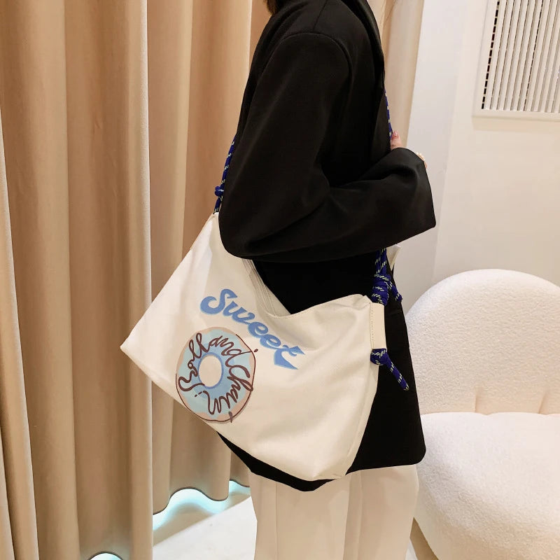 Canvas School Bags Japanese Cartoon Print Messenger Bag