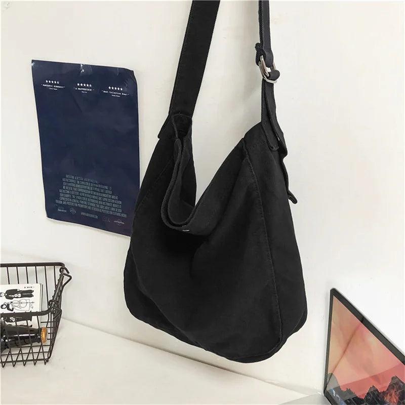This South Korea casual messenger bag is perfect for students and girls. It features a solid design and is made of durable canvas material.
