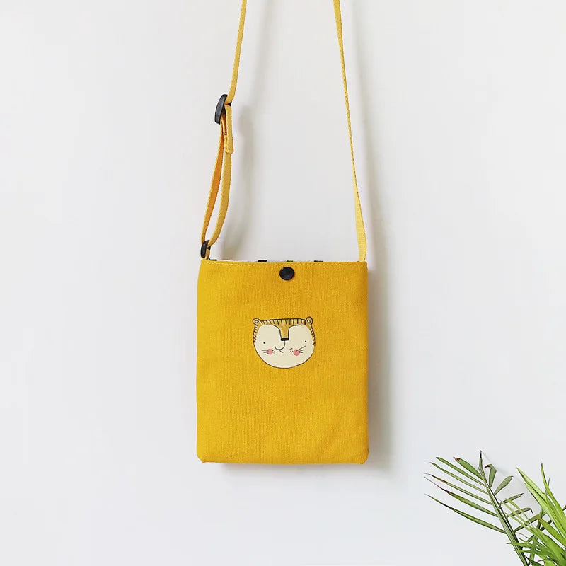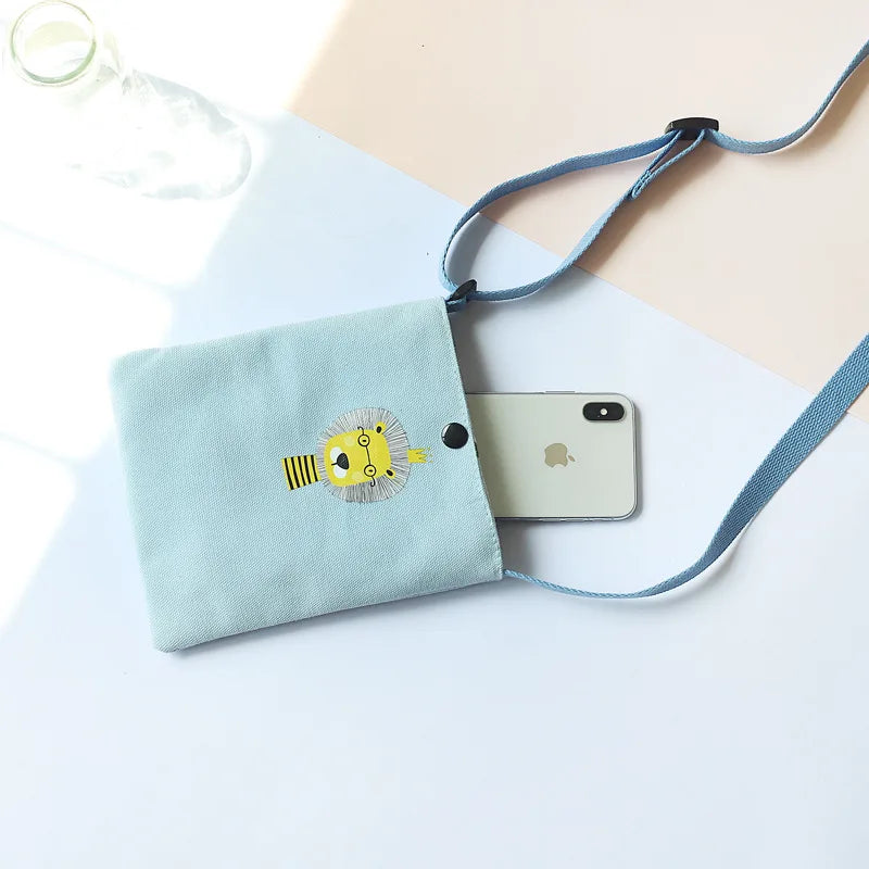 This small fresh student mobile phone bag is perfect for carrying essentials. Made of canvas, it features a vertical design.