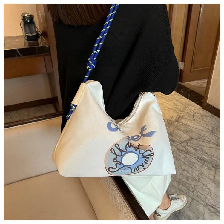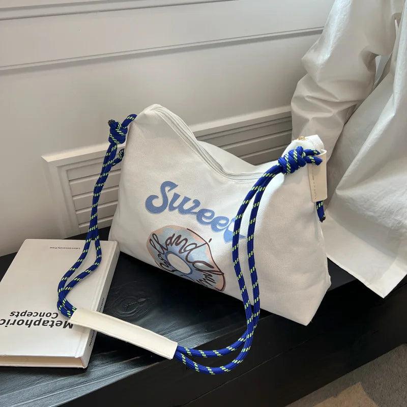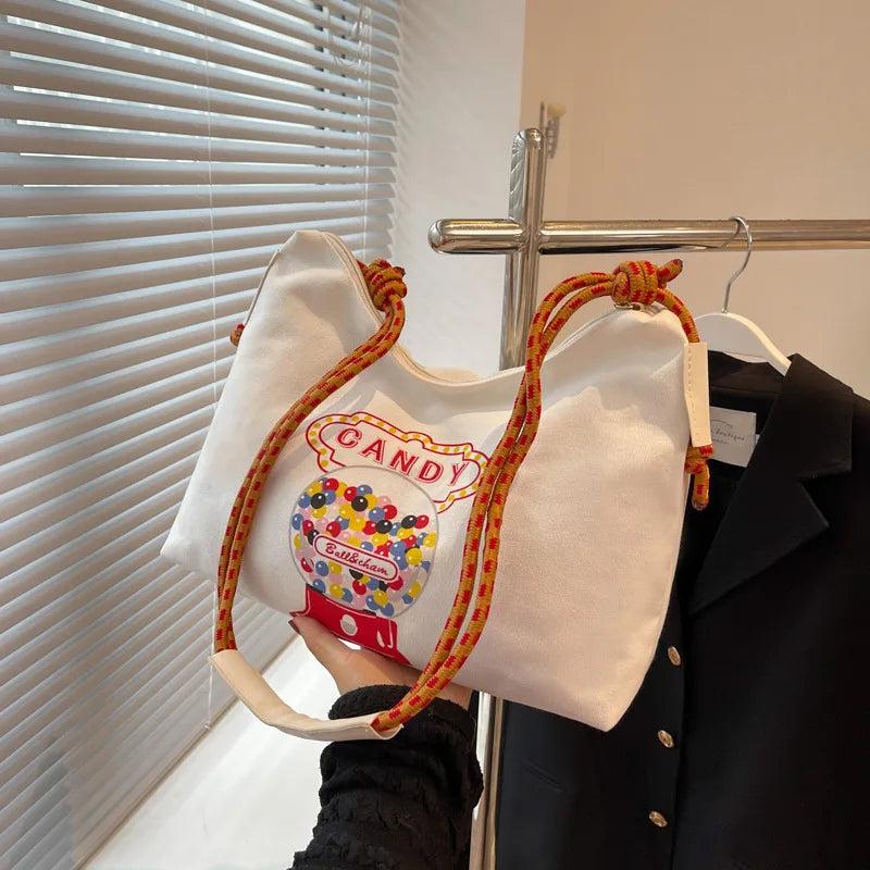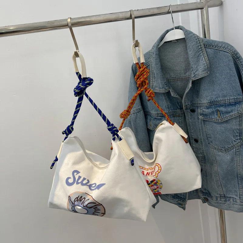 This canvas square bag is perfect for carrying your phone and other essentials. It can be worn on the shoulder or diagonally for added versatility.