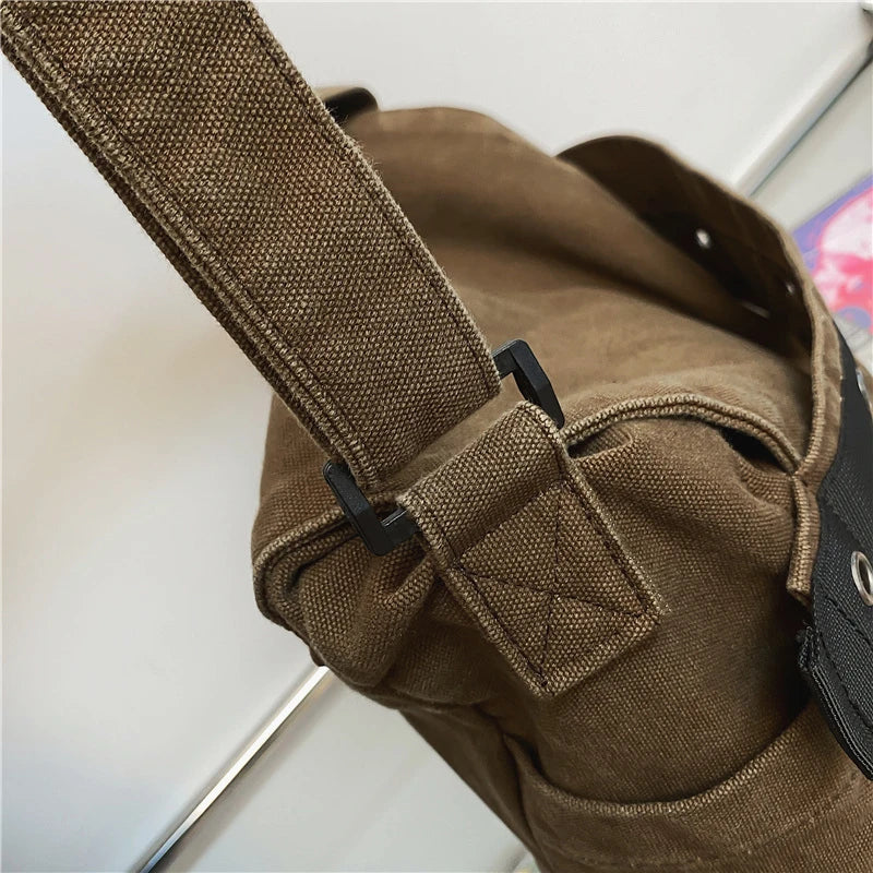 Canvas Tooling Solid Shoulder Bags Unisex Messenger College Crossbody Bags