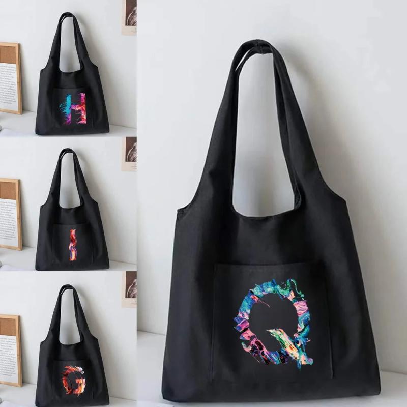 Canvas Tote Bag Ladies Travel Foldable Storage Bag Paint Printed