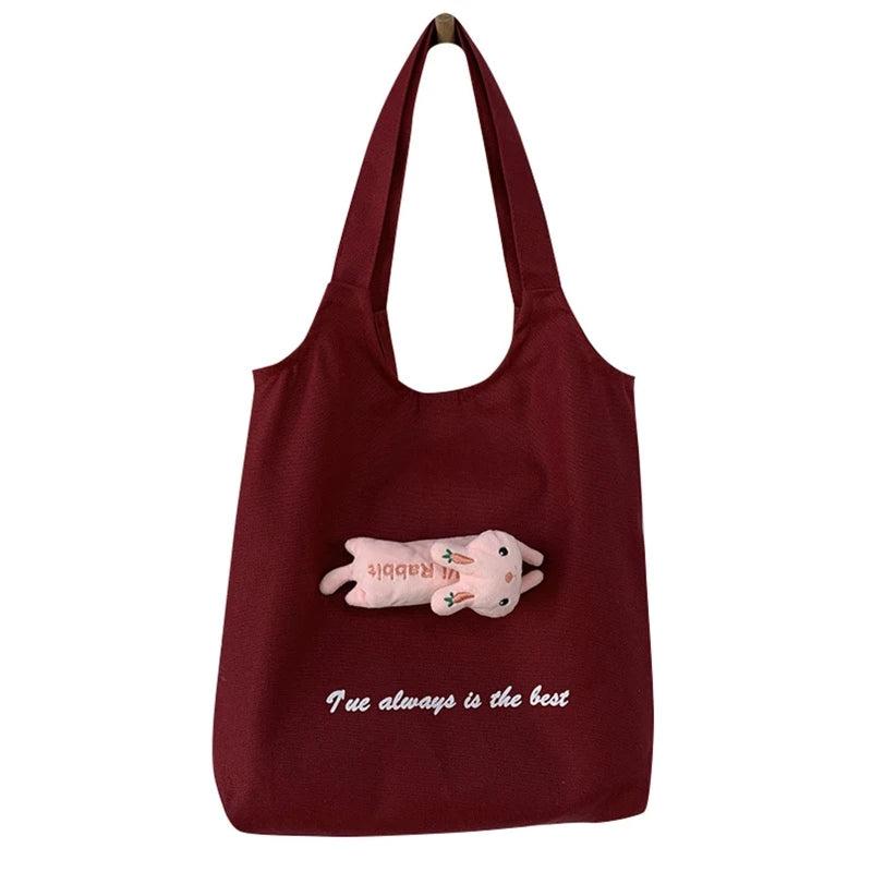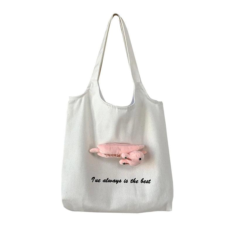 Canvas Tote Bag with Inside Pocket, Letter Design