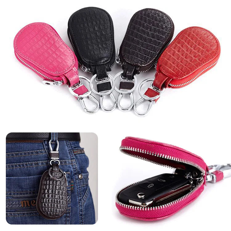 Keep your car keys secure and organized with this stylish PU leather key bag. The zipper closure ensures your keys stay safe and easily accessible.