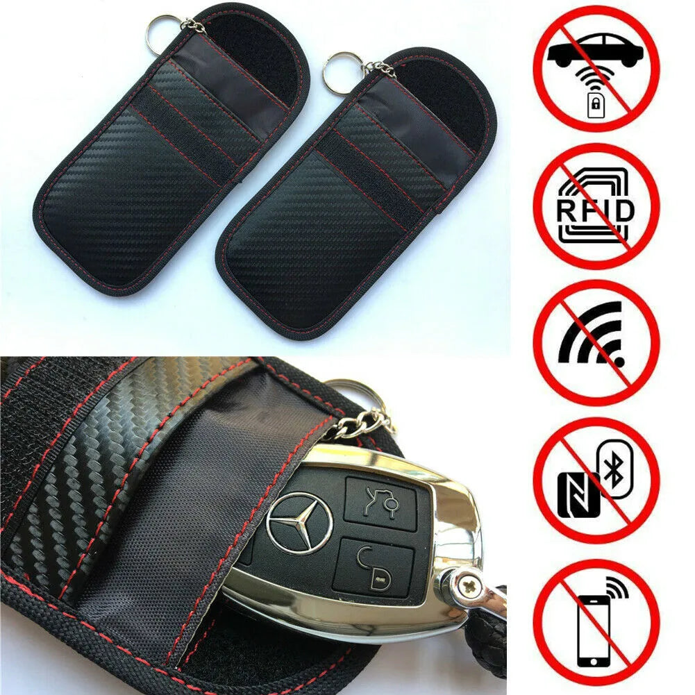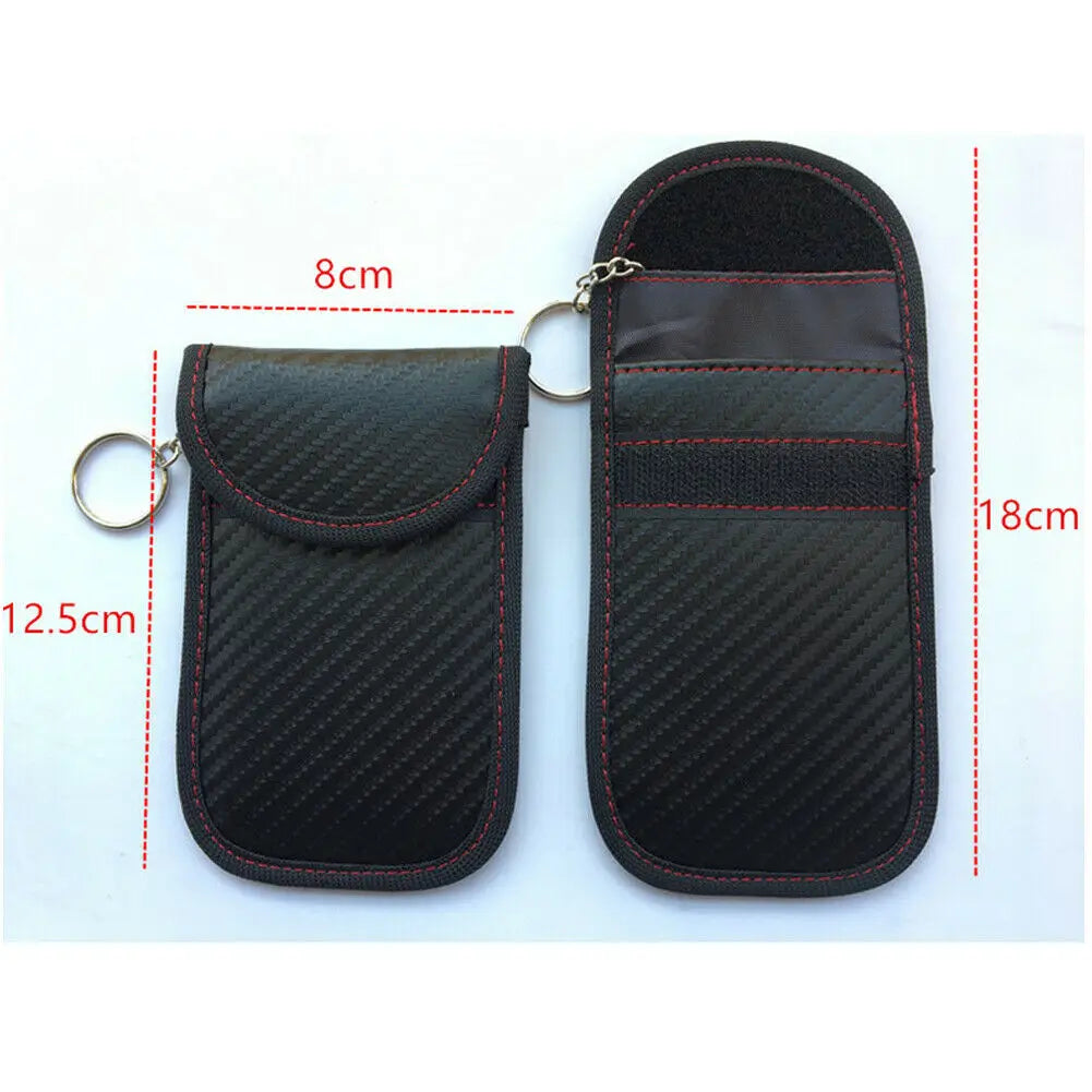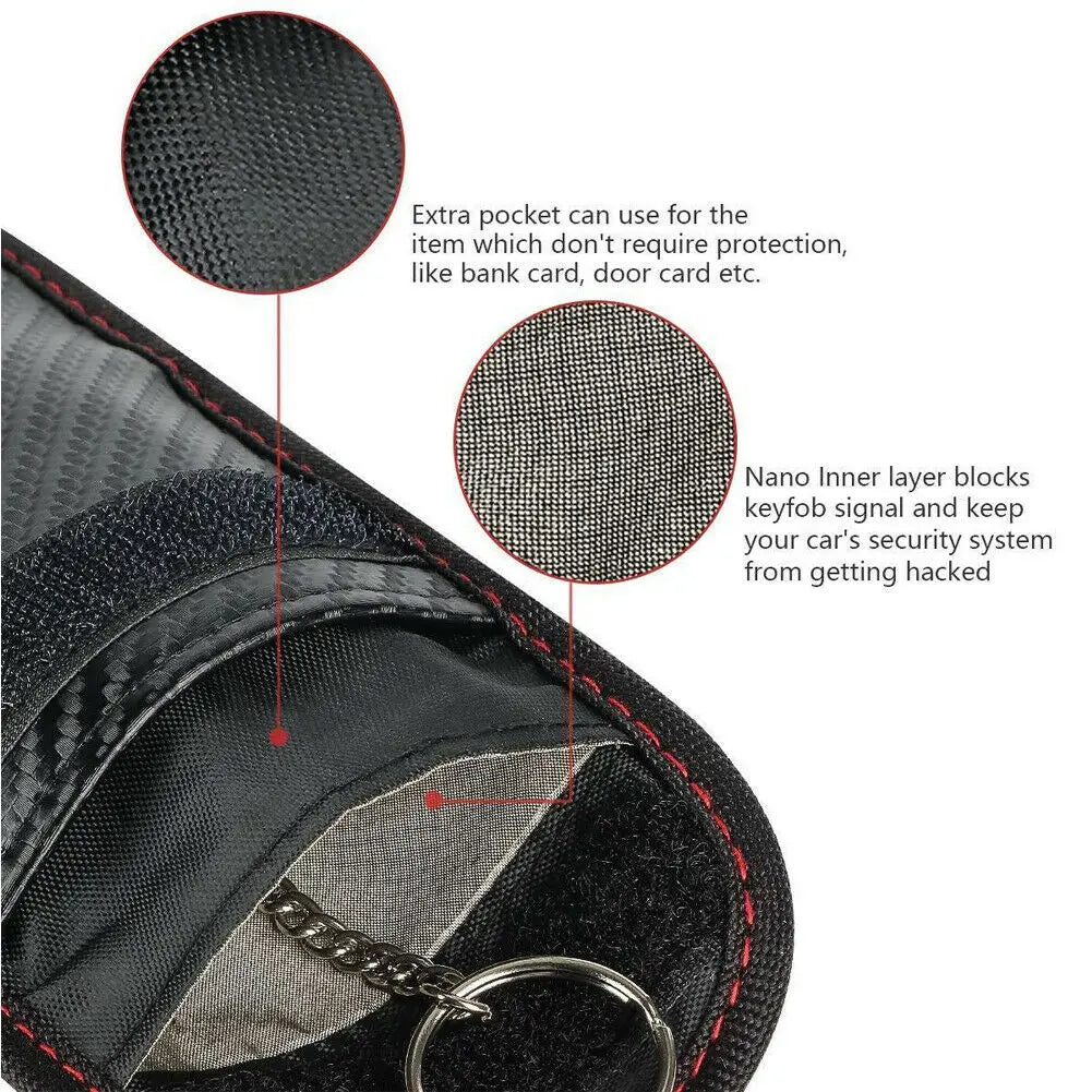 Protect your keyless entry car key fob from theft with this carbon grain signal blocking pouch. Prevents unauthorized access to your vehicle.