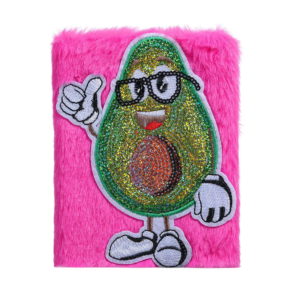 Cartoon Avocado Plush Notebook Furry Glitter Diary Line Paper Planner Organizer