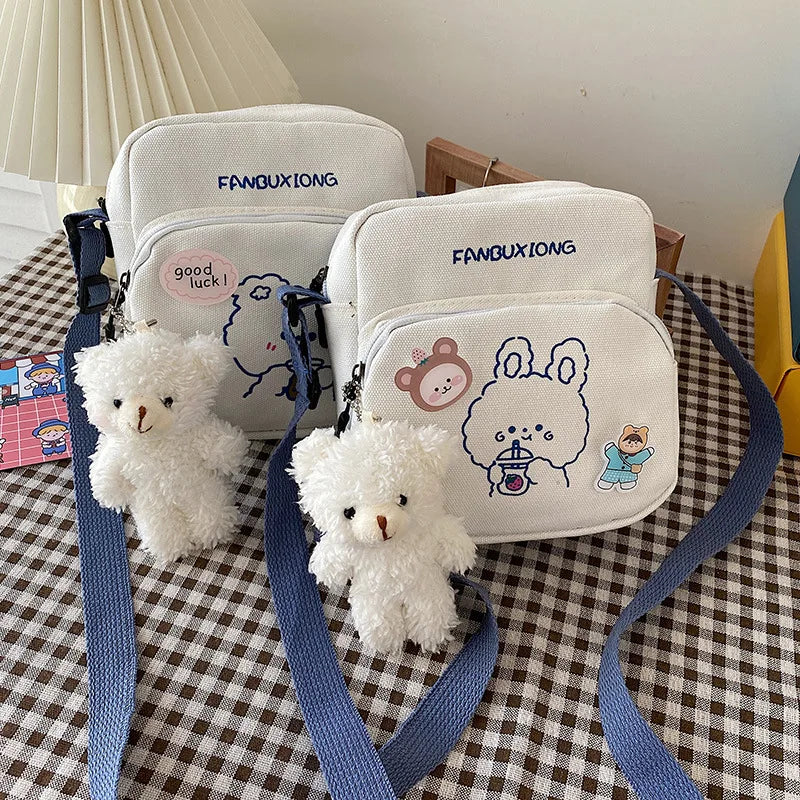 Cartoon Bear Student Shoulder Bag Casual Canvas Messenger Bag