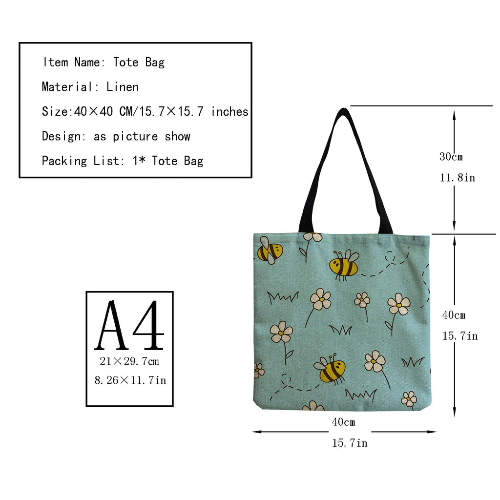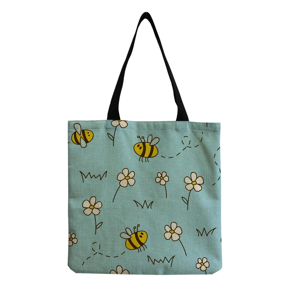 Cartoon Bee Floral Print Casual Bags Eco Friendly Shopper Bags
