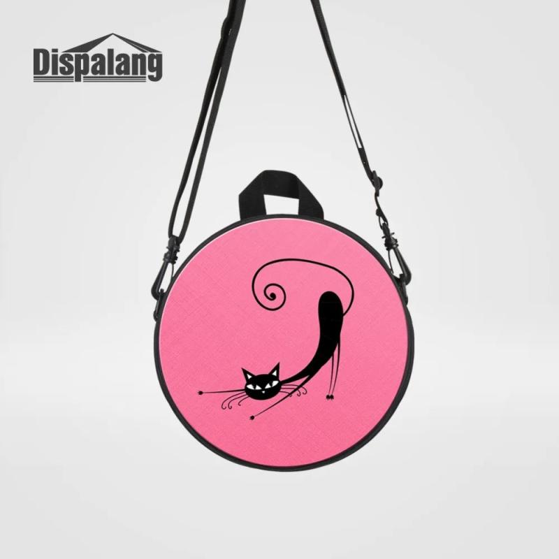 Adorable pink messenger bag for girls featuring cartoon cat printing, perfect for children. Ideal for storing small items on the go.