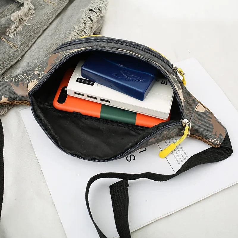 This cute waist bag is ideal for children and features a cartoon dinosaur design. It's great for keeping money, toys, and other small items safe.
