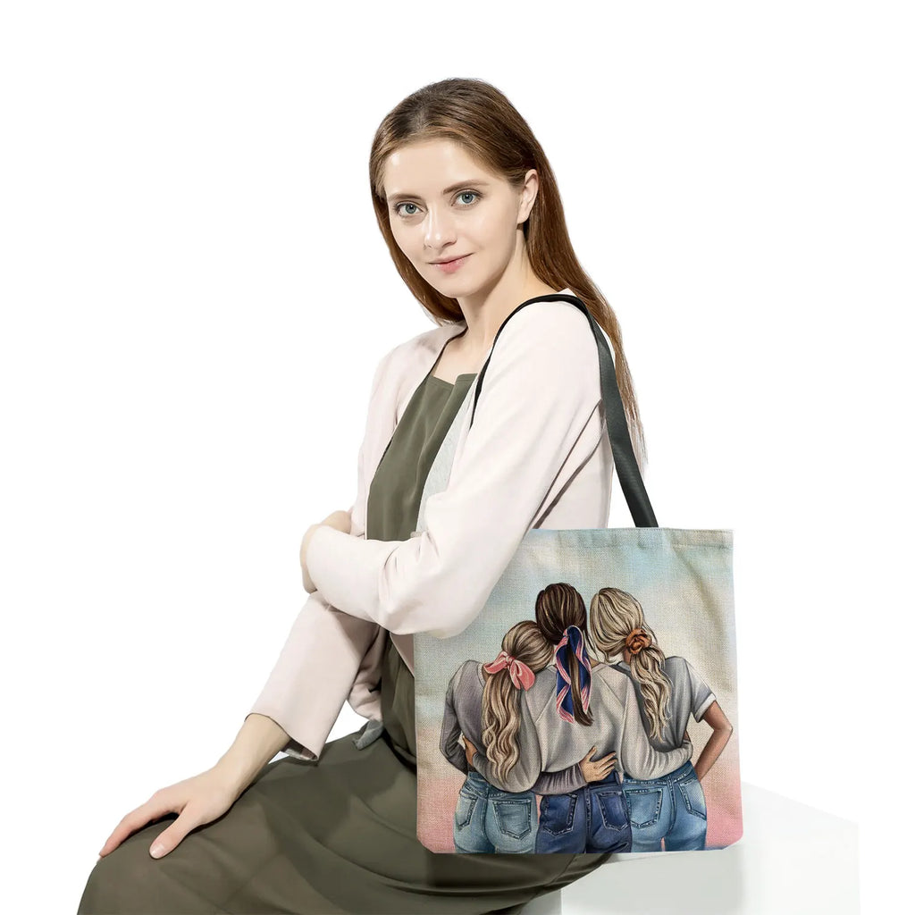Cartoon Sisters Tote Bag Eco-Friendly High Capacity Beach Bag