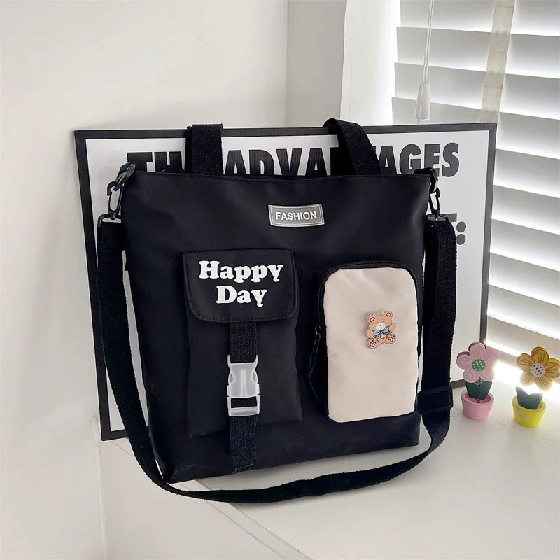Stay stylish and organized with this Harajuku nylon messenger bag. Perfect for students, it offers a casual yet trendy look with its contrast design.