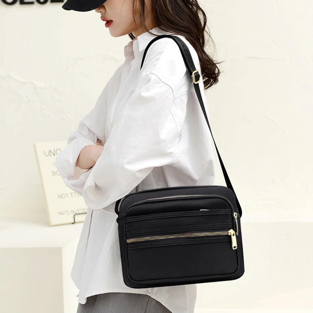 Stay stylish and organized with this casual crossbody bag made of waterproof nylon. Features a zippered pocket and adjustable strap, perfect for ladies on the go.