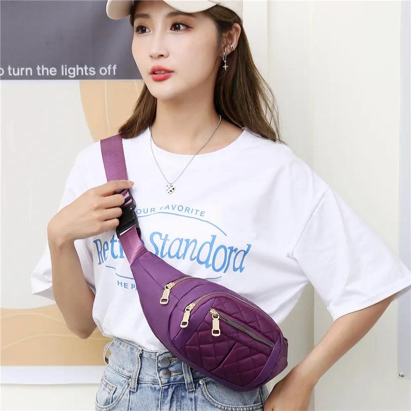 Stay stylish and hands-free with this versatile fanny pack and cross-body bag. Made of durable nylon material, perfect for outdoor sports and running.