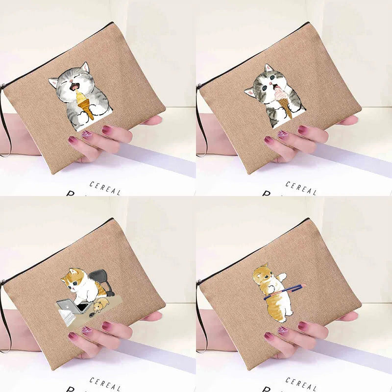 Cats Print Linen Makeup Bag Bachelorette Clutch Holiday Organizer Case