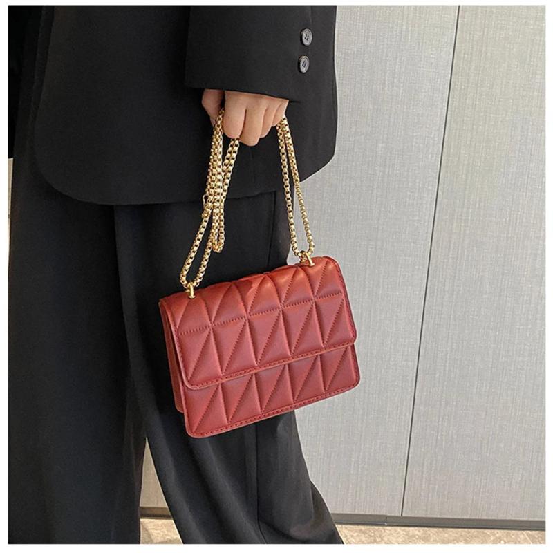 This stylish square shoulder bag features a chain strap and a solid color design. Perfect for daily use or a night out.