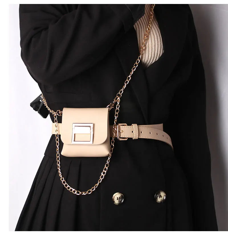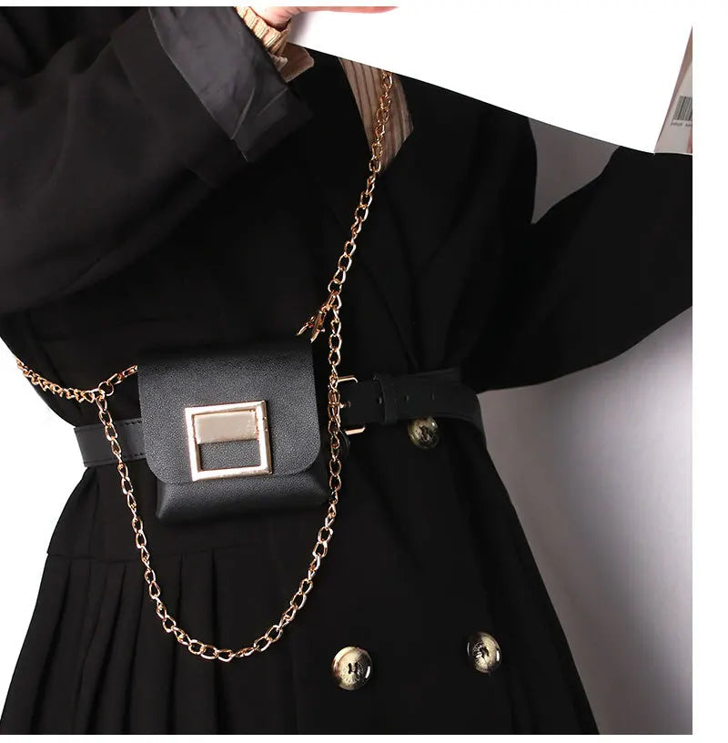 Experience hands-free style with this chic mini purse bag featuring a versatile crossbody chain shoulder strap and waist belt design.
