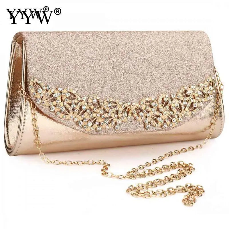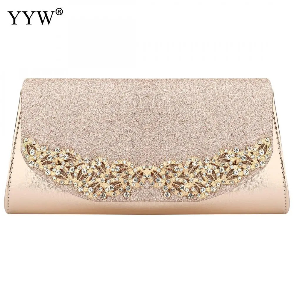 Champagne Wedding Clutch Evening Bag Silver Rhinestone Clutches