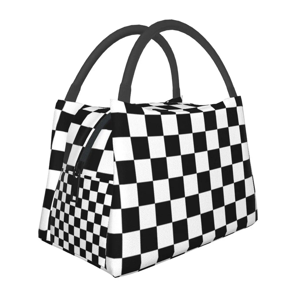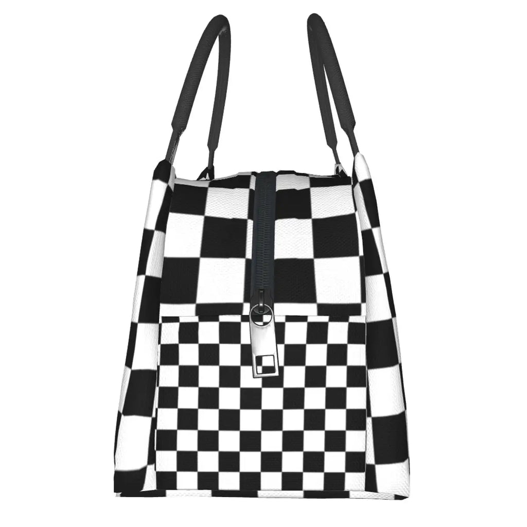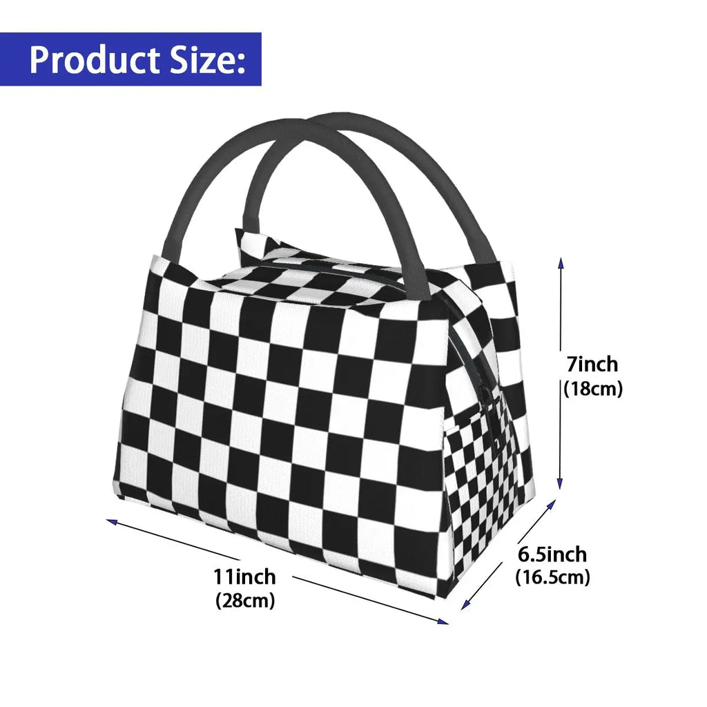 Checker Lunch Bag and Box Set, Water-resistant Tote Food Bags