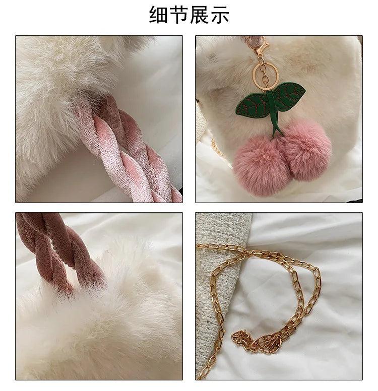Cherry Girl Plush Hand Bag Winter Style Chain Bag