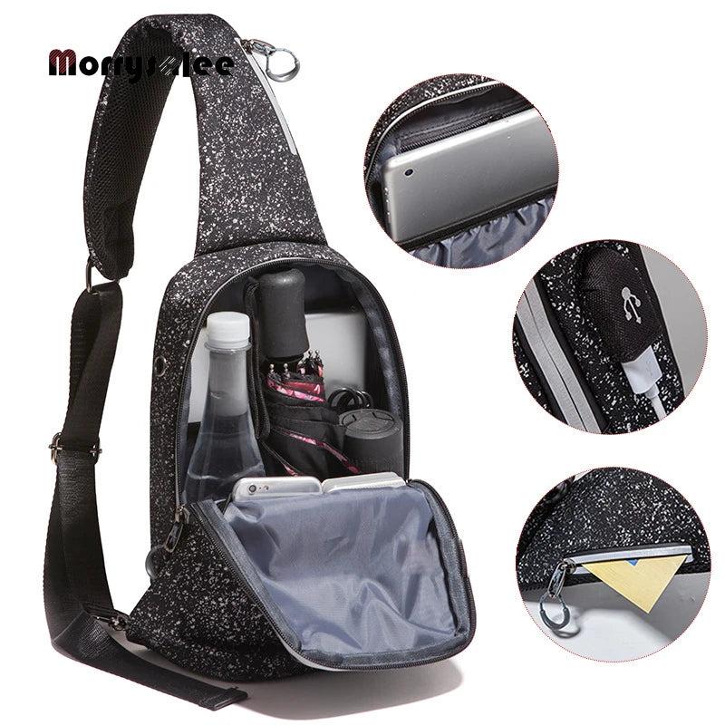 • Stylish chest bag with USB charging port