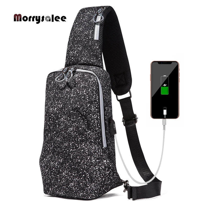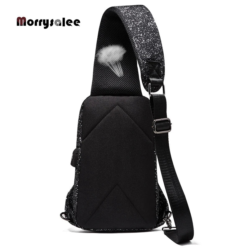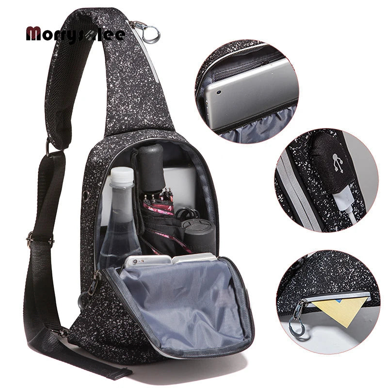 This stylish chest bag is perfect for travel and outdoor activities. Made of high-quality PU leather, it features a USB charging port for your convenience.