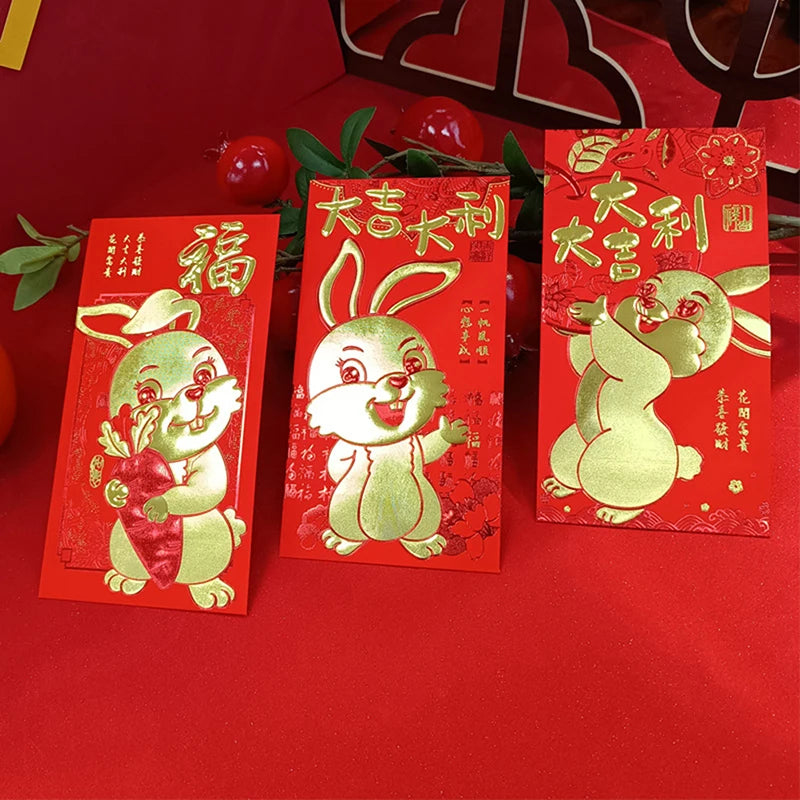 Celebrate the Year of the Rabbit with these adorable red envelopes featuring a cartoon design. Perfect for gift money, lucky red packets, and more!