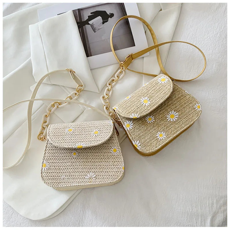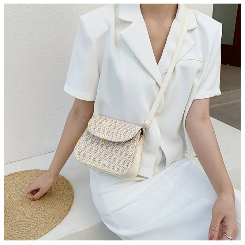 Description:Get summer-ready with this small woven bag featuring chrysanthemum embroidery. Perfect for a fresh and stylish look.Features: Small woven bag for summer vibes Chrysanthemum embroidery design Chain one-shoulder strap for convenience Ideal for a fresh and stylish look Perfect for a casual or semi-formal outfit This product may be available...