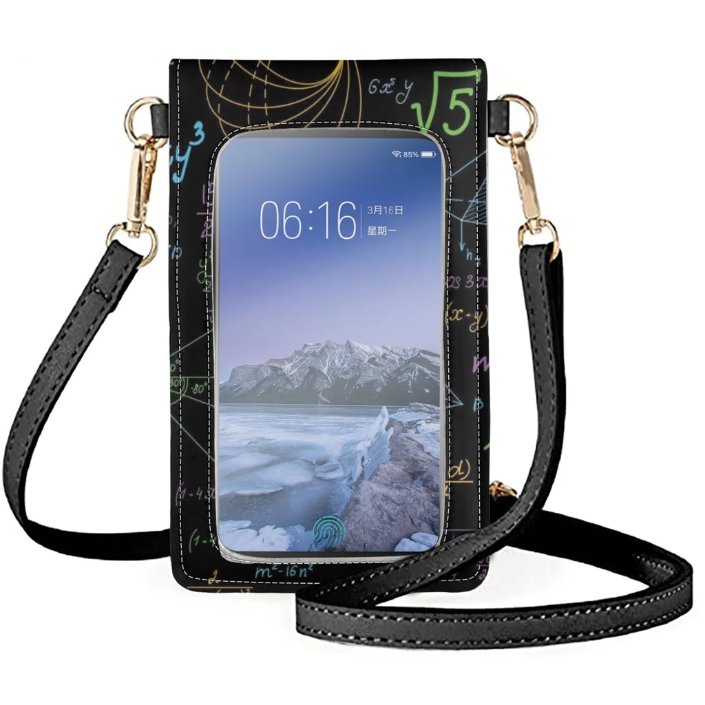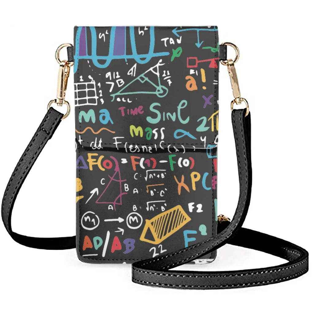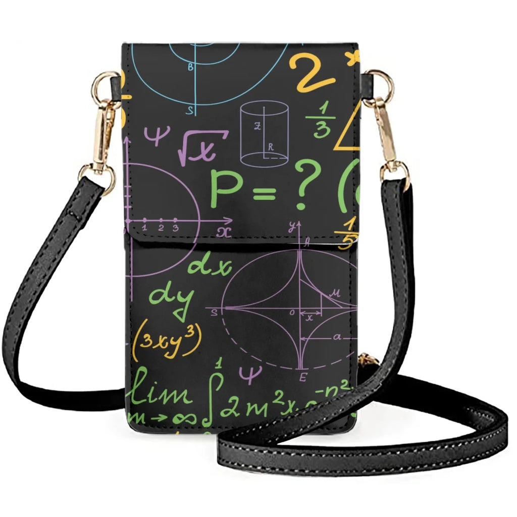 This stylish shoulder bag features a classic mathematical formula print, making it perfect for math lovers. It includes a slanted design for easy access to your phone and other essentials.