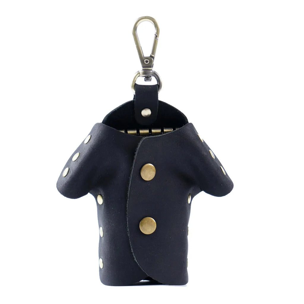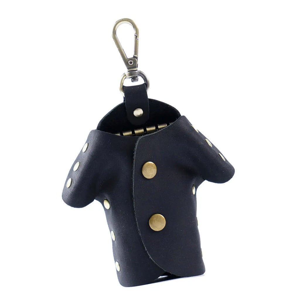 This key holder keychain is designed in the shape of clothes, made of PU material, and features a metal hook for easy attachment. It serves as a keys storage bag for travel, housekeeping, and restaurant use.