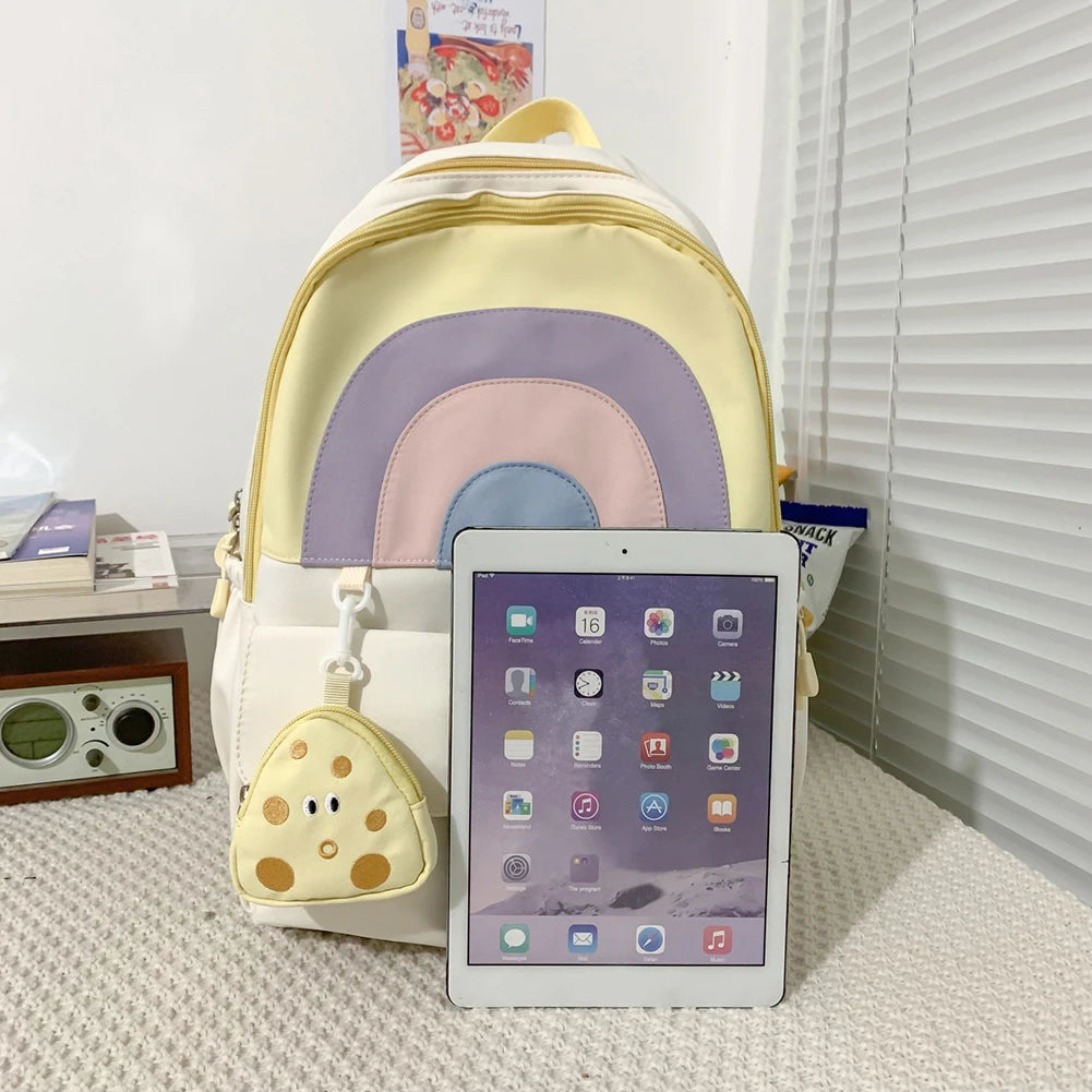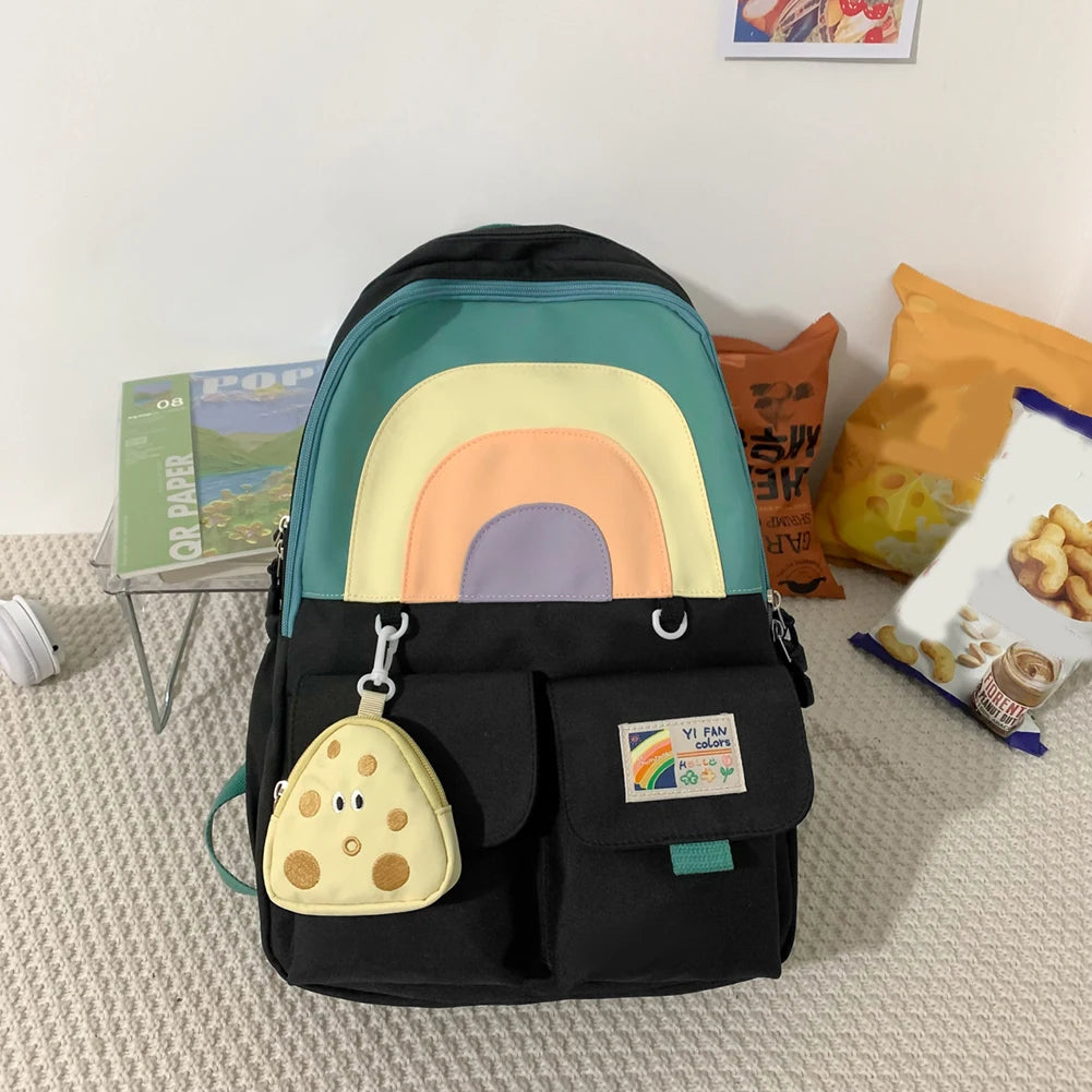College Laptop Rucksack Bookbag with Pendant Soft Multi-pockets