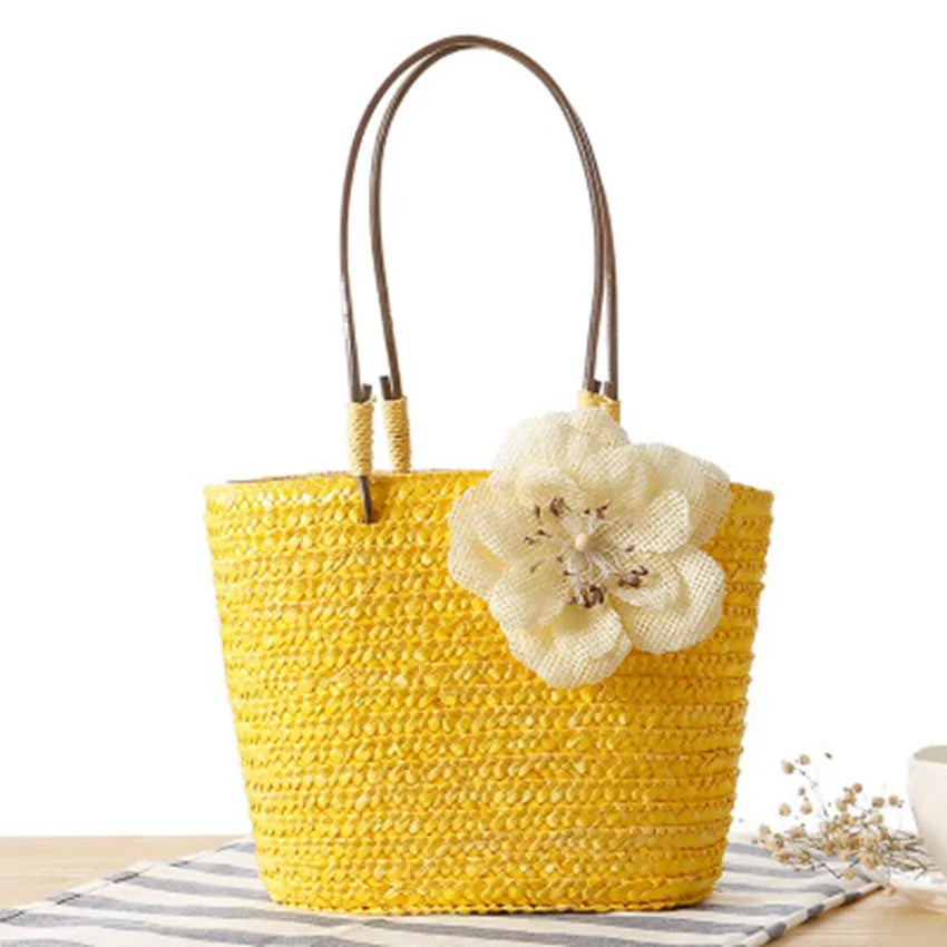 College Wind Delicate Linen Flower Bag Small Hand Bag Woven Travel