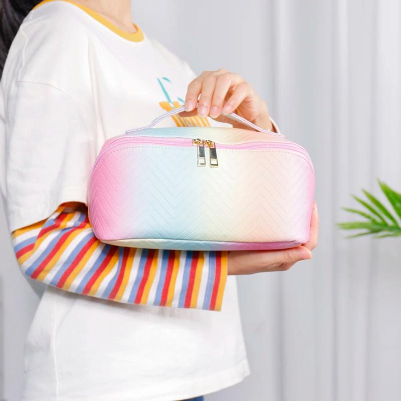 Description:This stylish make up bag features a wavy gradient pattern and is made of high-quality PU leather. It has a large capacity, a portable design, and a zipper closure for secure storage of your cosmetic tools and products.Features: High-quality PU leather construction Colorful wavy gradient pattern design Large capacity for...