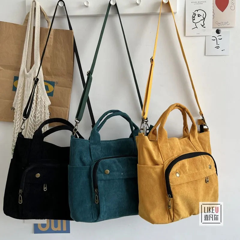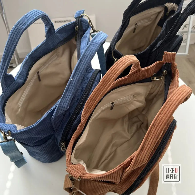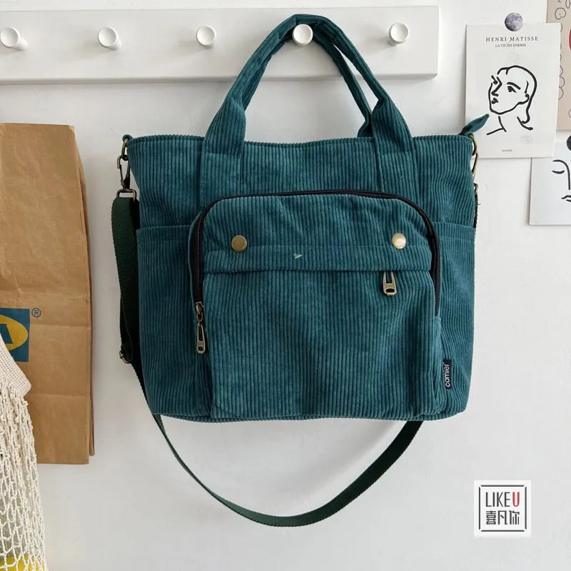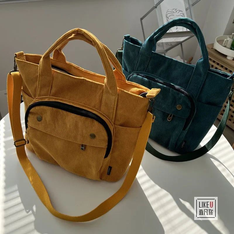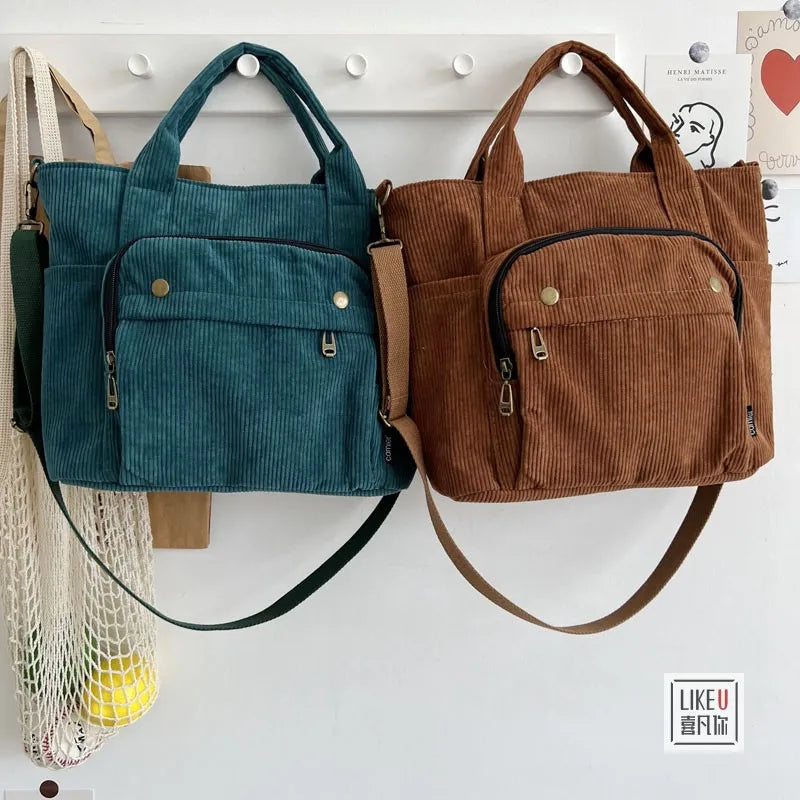Stay stylish and organized with this versatile shoulder bag. Made of thickened canvas with a chic corduroy design, perfect for school or daily use.