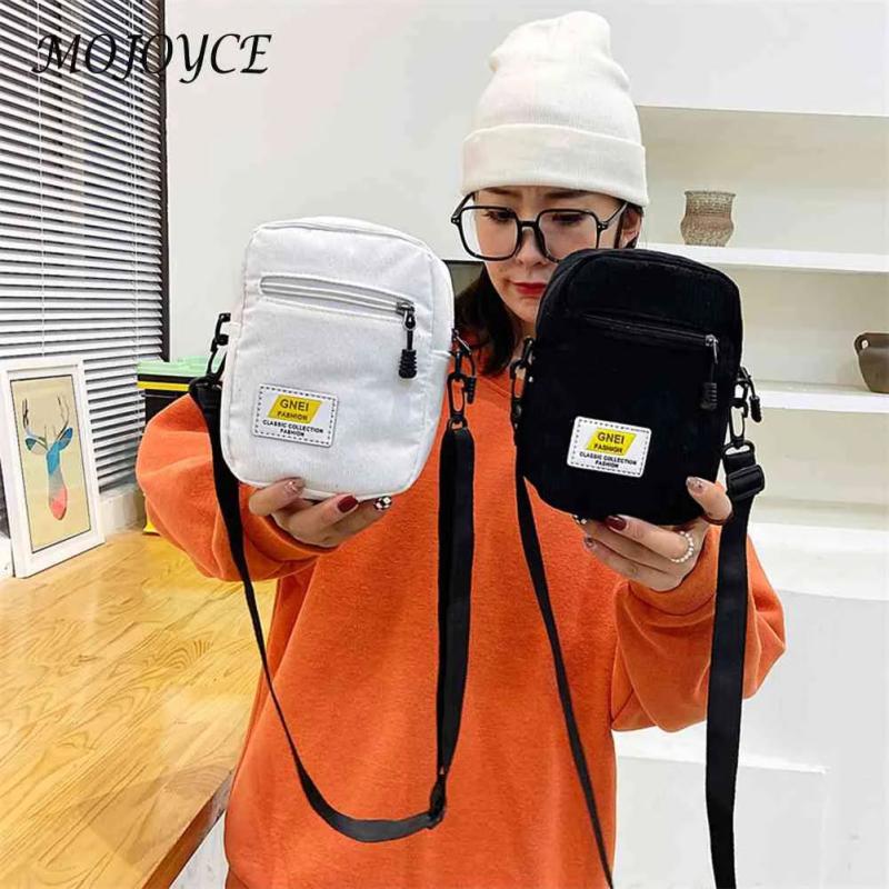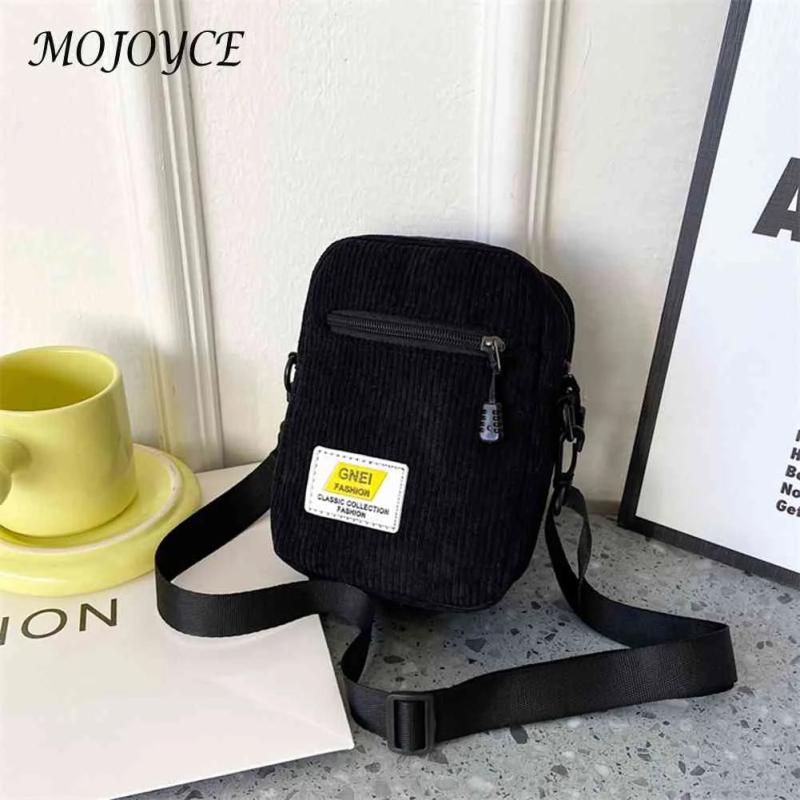 Corduroy Zipper Messenger Bag Autumn Winter Multi-layer Shoulder Bag
