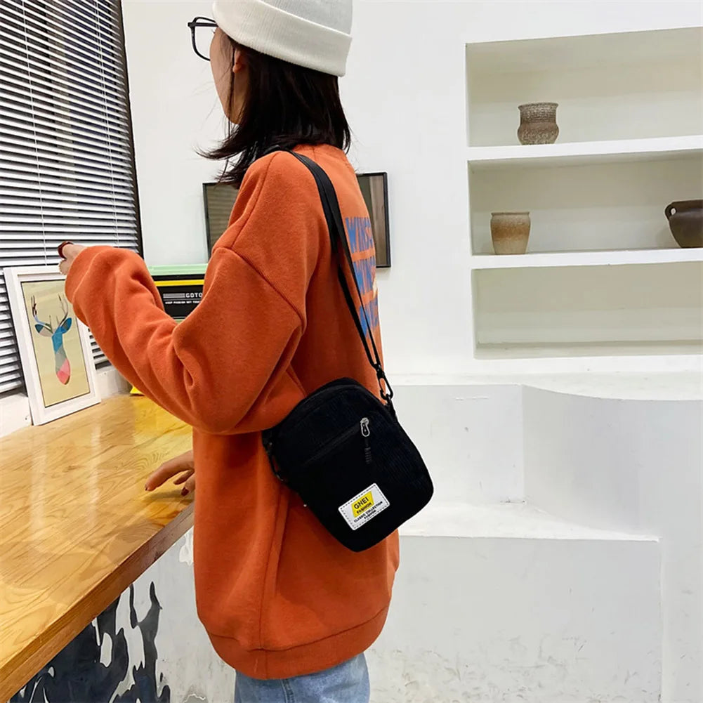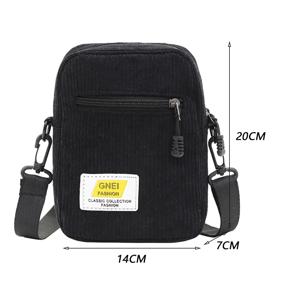 Corduroy Zipper Messenger Bag Street Shoulder Bag