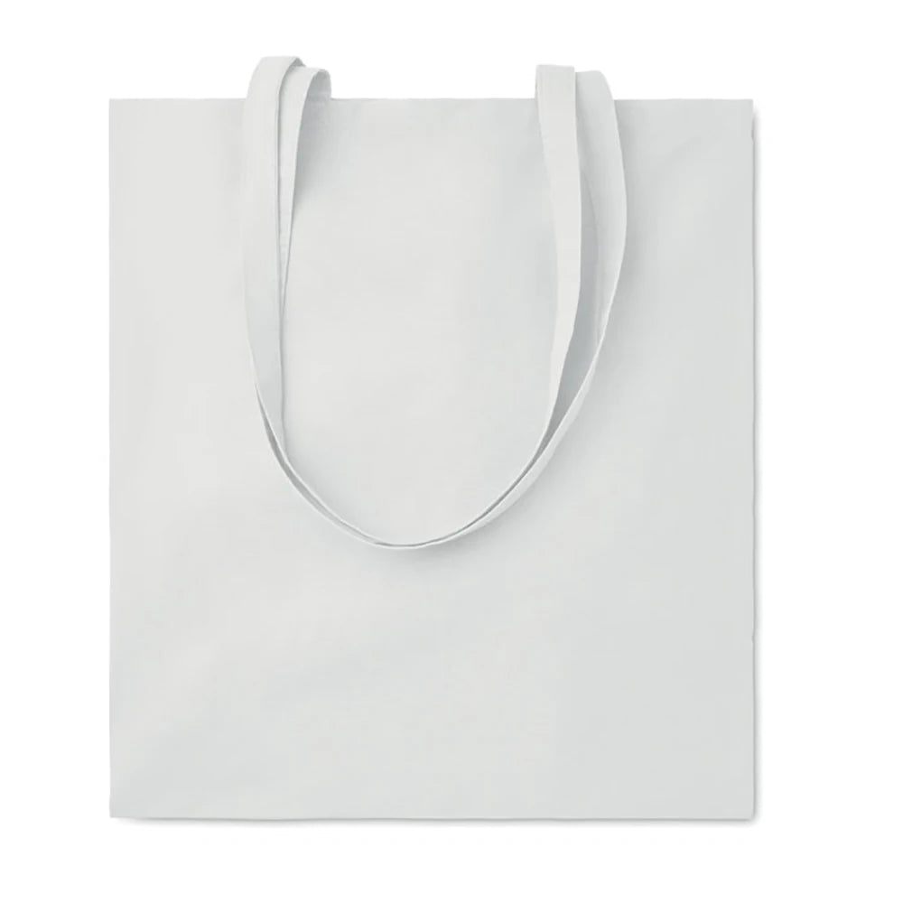 This pack includes 10 reusable cotton bags with long handles, perfect for shopping, crafts, and advertising. Made of durable 140 grs cotton.