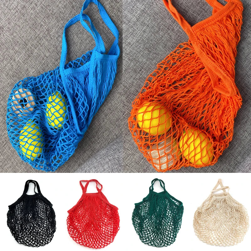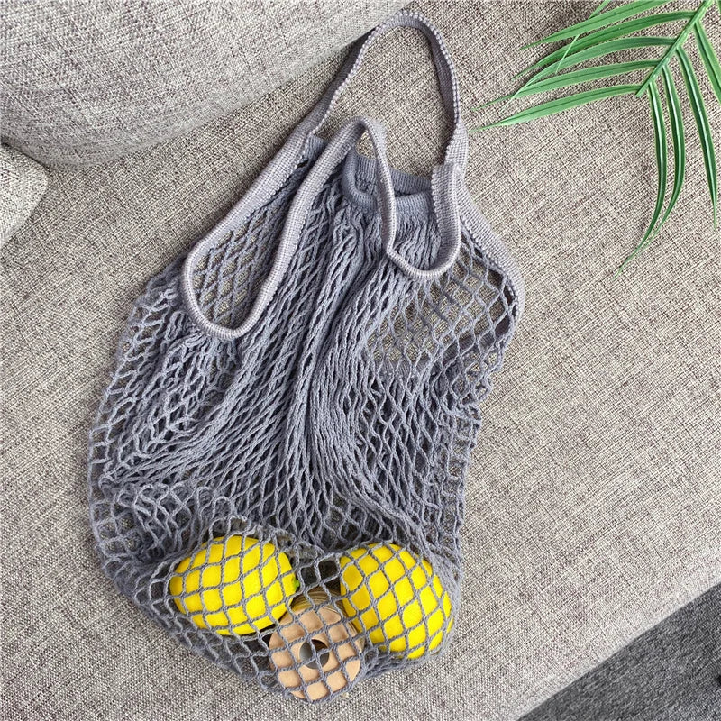 This reusable woven net bag is perfect for shopping fruits and vegetables at the market. It is eco-friendly and sturdy, making it a great alternative to plastic bags.