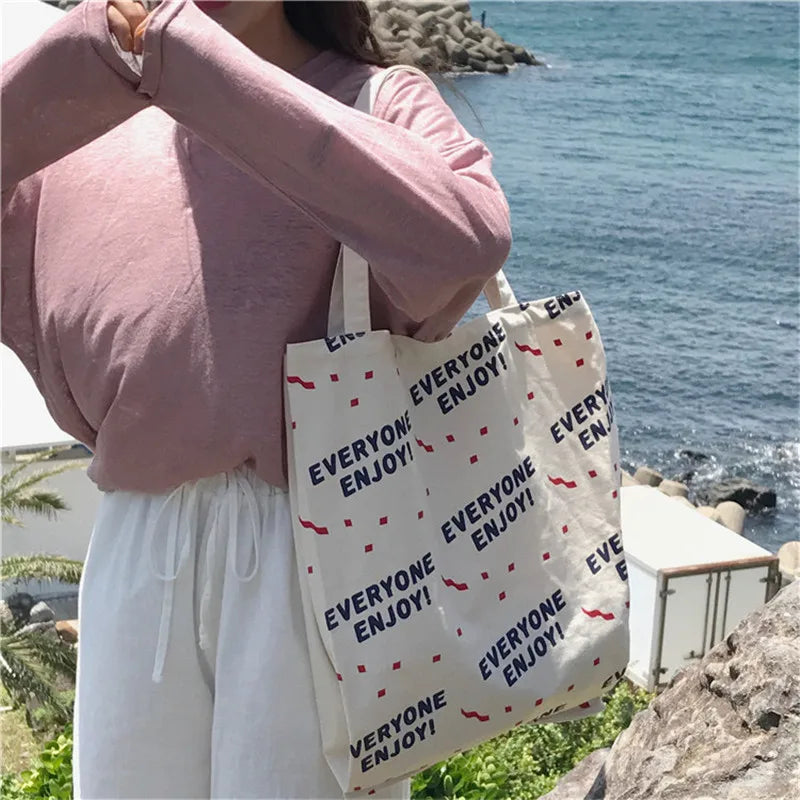 Cotton Stripe Canvas Shopping Tote Bag Zippered Small Shopping Bag