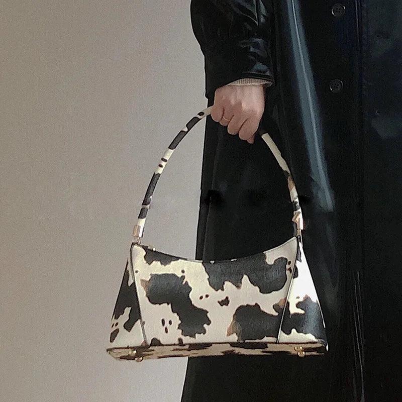 Cow Print Shoulder Bag Small PU Leather Casual Lady Handbag