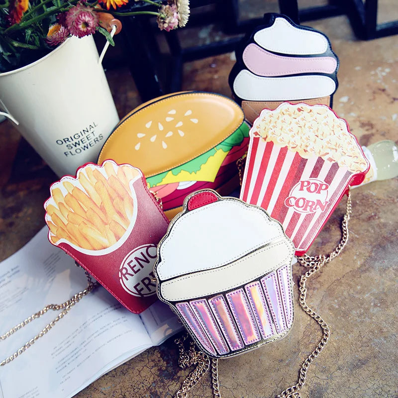Creative Style Woman Hamburger Ice Cream PU Chains Bags