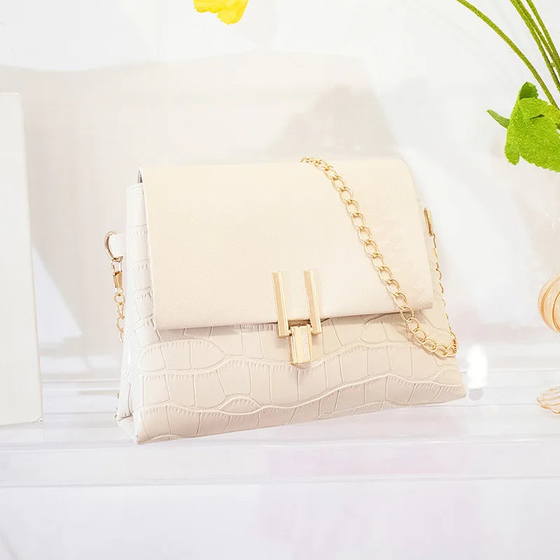 Crocodile Pattern Shoulder Bag with Lock Catch Chain